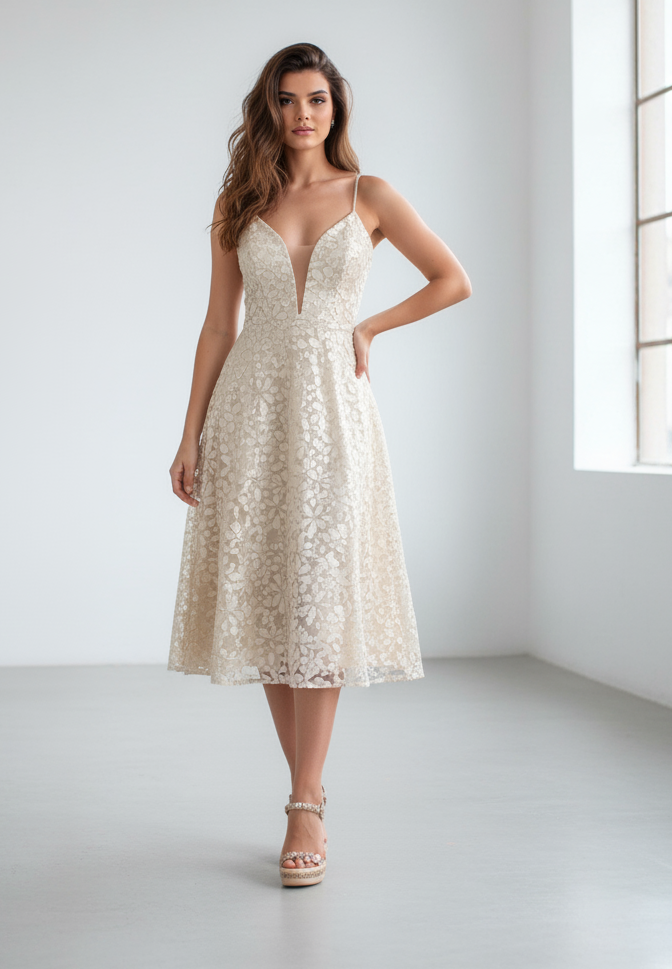 Vestido de tecido trabalhado com fios dourados